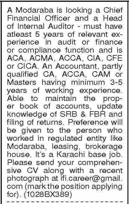 Modaraba Management Company Limited invites applications for job positions advertised in daily Dawn dated 26 May 2025 for following vacancies in Karachi, karachi Sindh Pakistan.