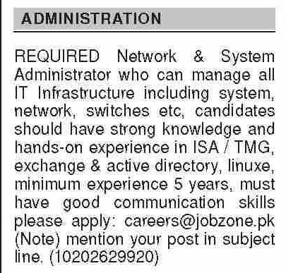 Apply as per details in job advertisement. Login to view further details of how to apply via https://www.jobz.pk online.