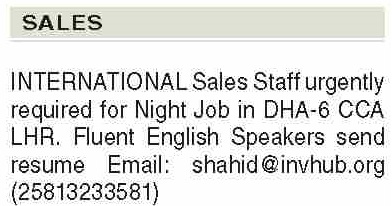 Dawn Sunday Classified Ads 26 Jan 2025 For Sales Staff