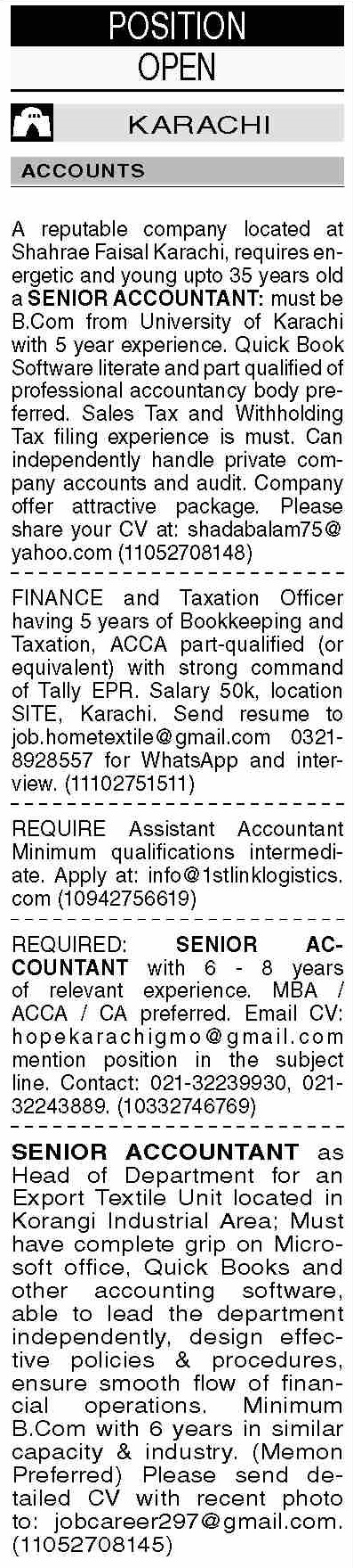 Dawn Sunday Classified Ads 27 August 2023 For Accounts Staff