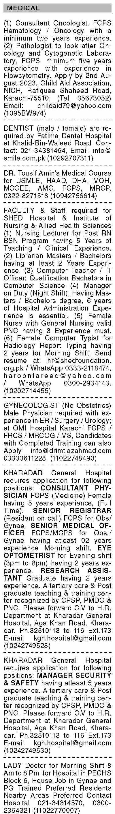 Dawn Sunday Classified Ads 27 August 2023 For Medical