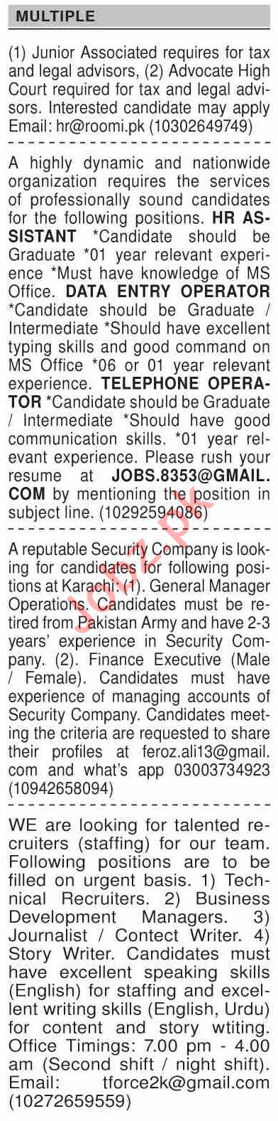 Dawn Sunday Classified Ads 27 Dec 2020 for Multiple Staff