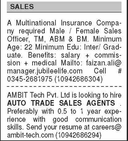 Dawn Sunday Classified Ads 27 Feb 2022 for Sales Staff