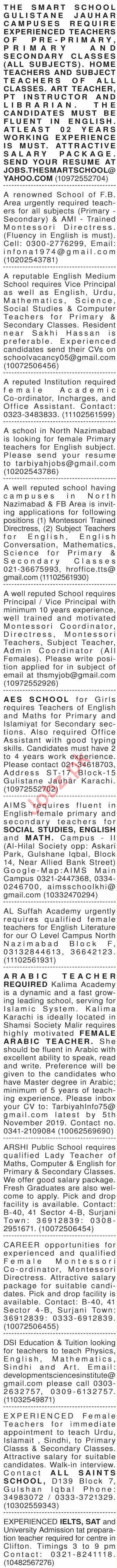 Dawn Sunday Classified Ads 27 Oct 2019 For Teaching Staff