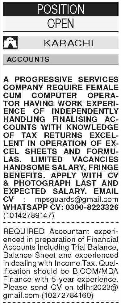 Dawn Sunday Classified Ads 27 Oct 2024 For Accounts Staff