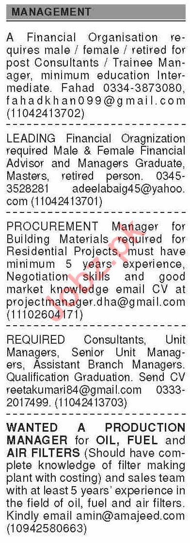Manager, Accounts Manager, Export Manager, Import Manager, SPA Manager, Garments Manager, Merchandiser, Accountant, Assistant Accounts Manager, Accounts Officer, Finance Manager, Sales Manager, Marketing Manager, Executive Manager, Branch Manager, Secretary, Security Guard, Driver, Office Assistant seeks in well developed companies.