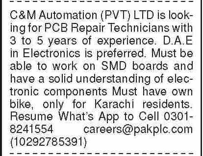 C&M Automation invites applications for job positions advertised in daily Dawn dated 29 September 2025 for following vacancies in Karachi, karachi Sindh Pakistan.