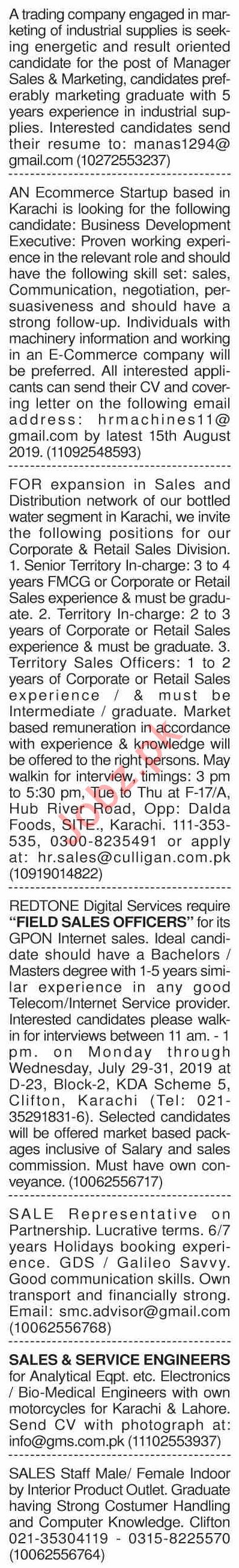Dawn Sunday Classified Ads 28th July 2019 for Sales Staff