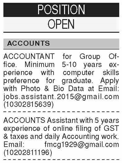 Dawn Sunday Classified Ads 29 June 2025 for Accounts Staff