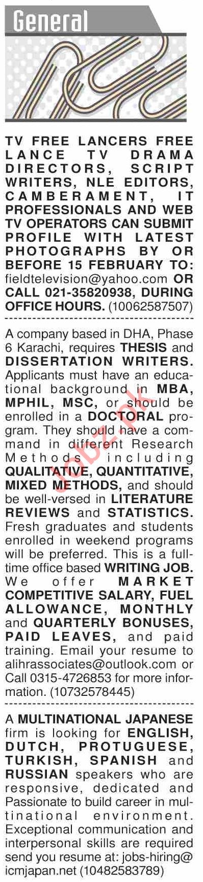 Dawn Sunday Classified Ads 2nd Feb 2020 For General Staff