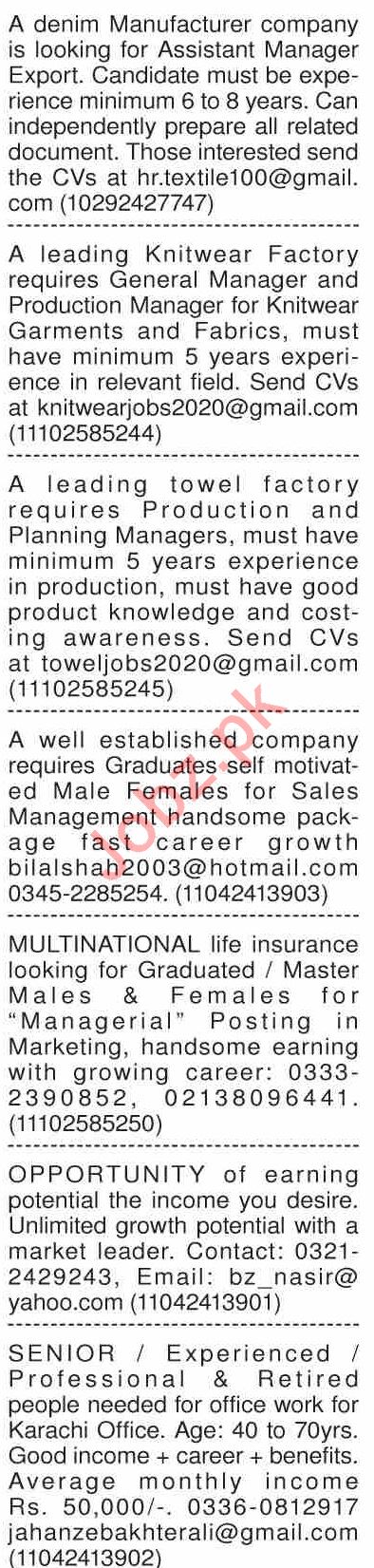 Manager, Admin Manager, Assistant Manager, Accounts Manager, Export Manager, Import Manager, SPA Manager, Garments Manager, Merchandiser, Accountant, Assistant Accounts Manager, Accounts Officer, Finance Manager, Sales Manager, Marketing Manager, Executive Manager, Branch Manager, Secretary, Security Guard, Driver, Office Assistant seeks in well reputed companies.