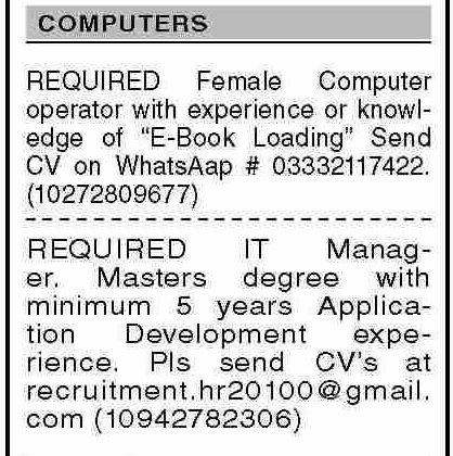 Dawn Sunday Classified Ads 3 Aug 2025 For Computer Staff