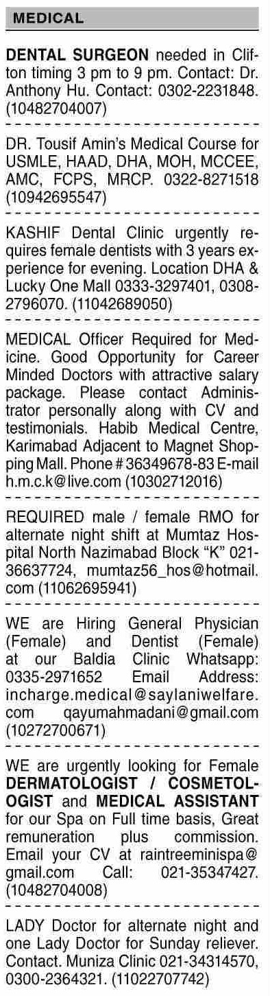 Dawn Sunday Classified Ads 3 July 2022 For Medical Staff