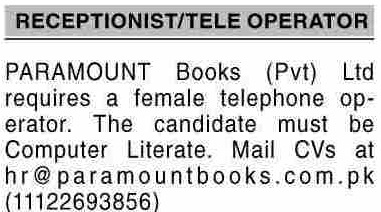 Latest Paramount Books Telephone Operator Posts Karachi 2025