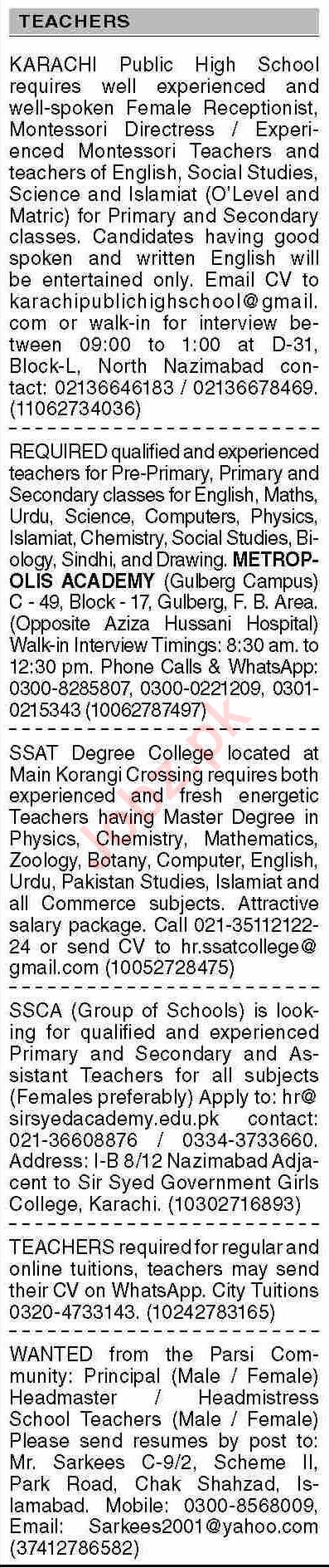 Dawn Sunday Classified Ads 30 June 2024 For Teaching Staff