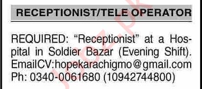Dawn Sunday Classified Ads 30 Oct 2022 for Receptionist