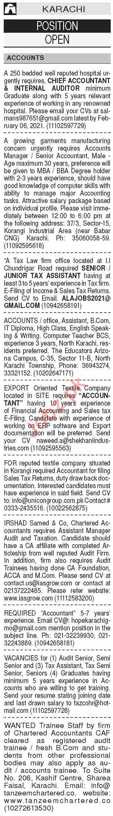 Dawn Sunday Classified Ads 31st Jan 2021 for Accounts Staff