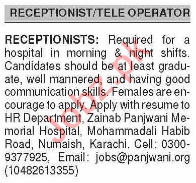 Dawn Sunday Classified Ads 31st Jan 2021 For Receptionist