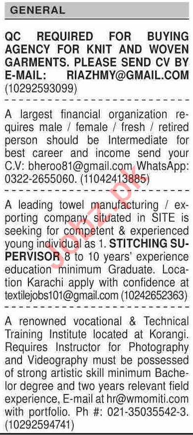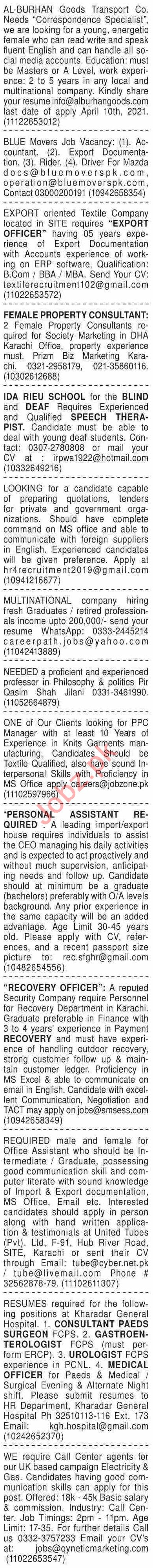 Dawn Sunday Classified Ads 4 April 2021 For General Staff