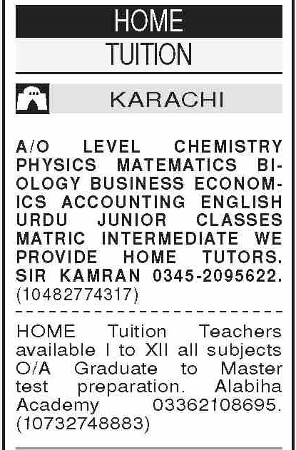 Academy jobs advertisement dated about 5 February 2024 in daily Dawn Newspaper invites application for the vacant post of biology teacher, physics teacher, teacher, a level teacher, mathematics teacher, home tutor and o level teacher in Karachi, karachi Sindh Pakistan. Preferred Education is MA, M.sc, Bachelor and Master etc.