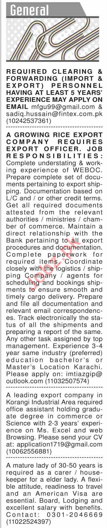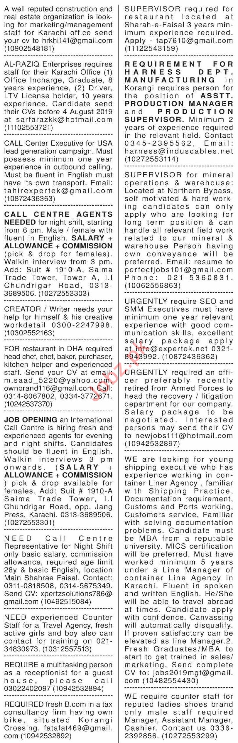 Dawn Sunday Classified Ads 4th Aug 2019 for General Staff