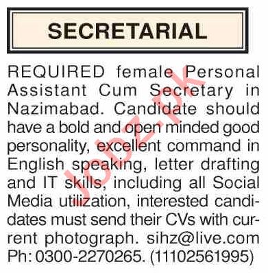 Dawn Sunday Classified Ads 5th Jan 2020 For Secretarial