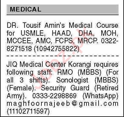 Dawn Sunday Classified Ads 6 Nov 2022 For Medical Staff