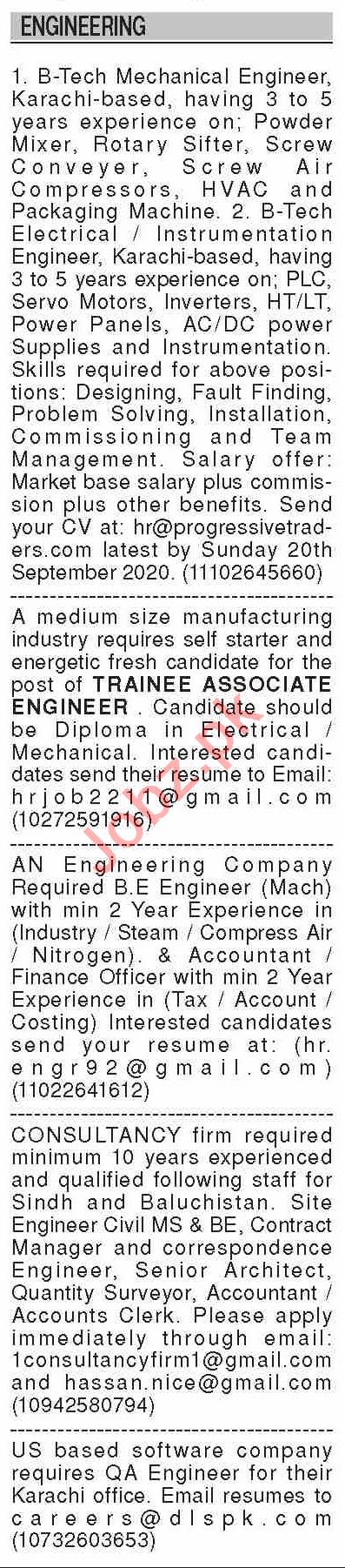 Dawn Sunday Classified Ads 6 Sep 2020 for Engineering Staff
