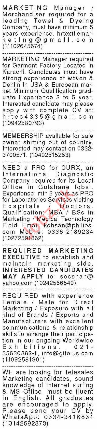 Dawn Sunday Classified Ads 6 Sep 2020 For Marketing Staff