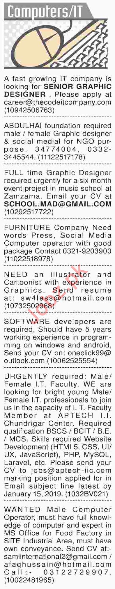 Dawn Sunday Classified Ads 6th Jan 2019 for IT Staff