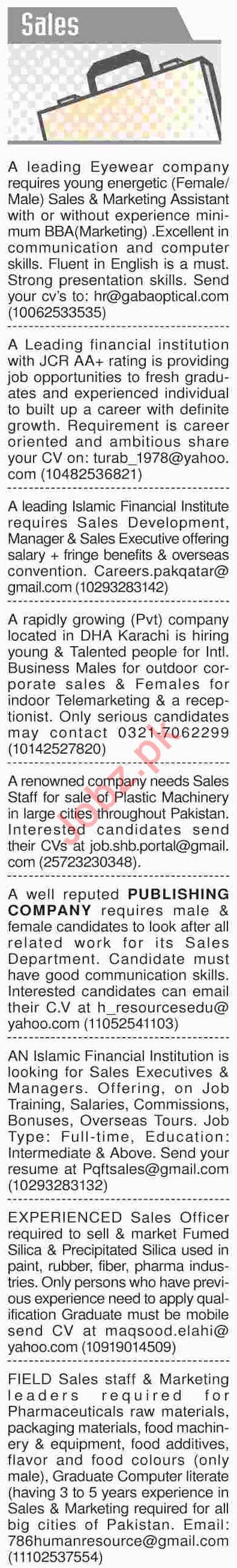 Dawn Sunday Classified Ads 7th April 2019 for Sales Staff