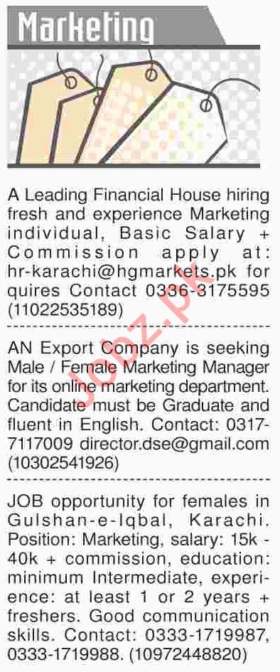 Dawn Sunday Classified Ads 7th April 2019 Marketing Staff