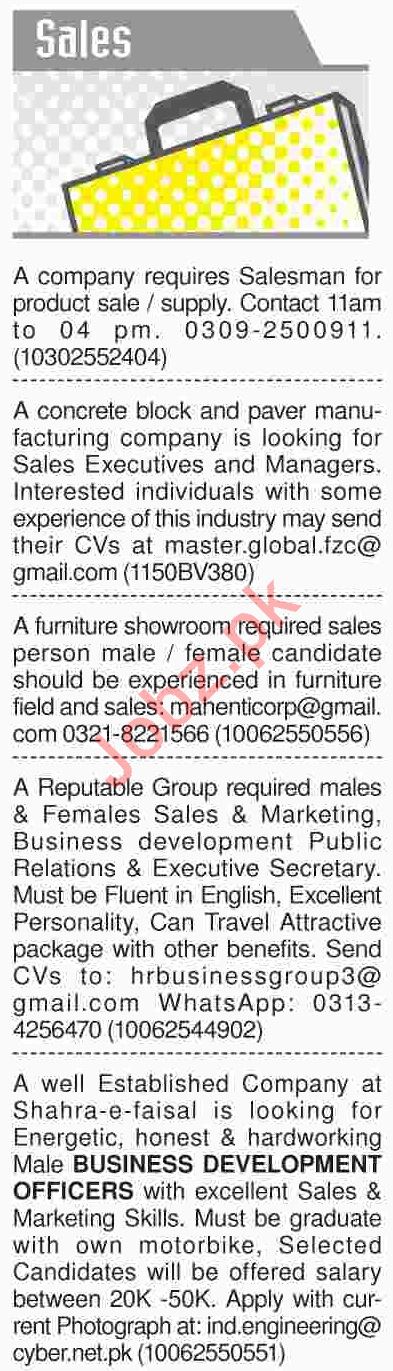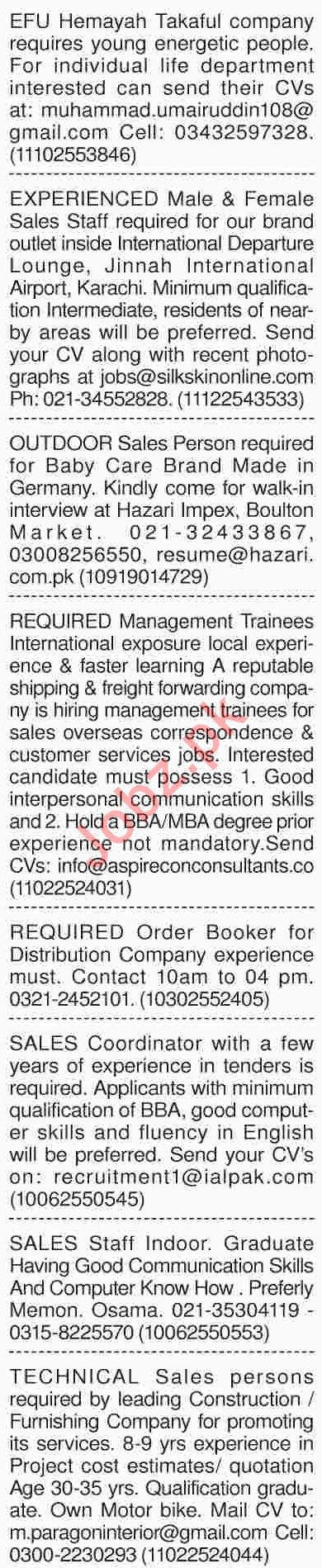 Dawn Sunday Classified Ads 7th July 2019 for Sales Staff