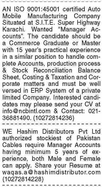 Dawn Sunday Classified Ads 9 March 2025 For Finance Staff