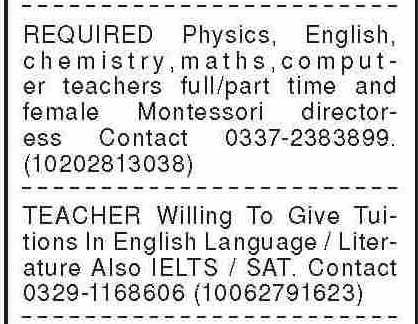 Dawn Sunday Classified Ads 9 Nov 2025 For Educational Staff