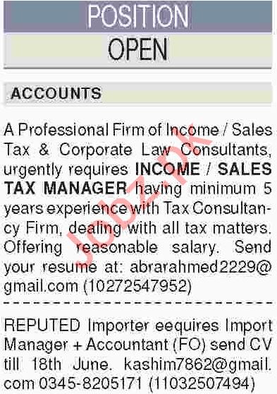 Dawn Sunday Classified Ads 9th June 2019 For Accounts Staff