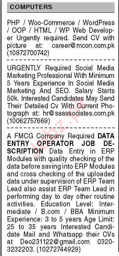 Dawn Sunday Classified Computer & IT Jobs 2022 In Karachi