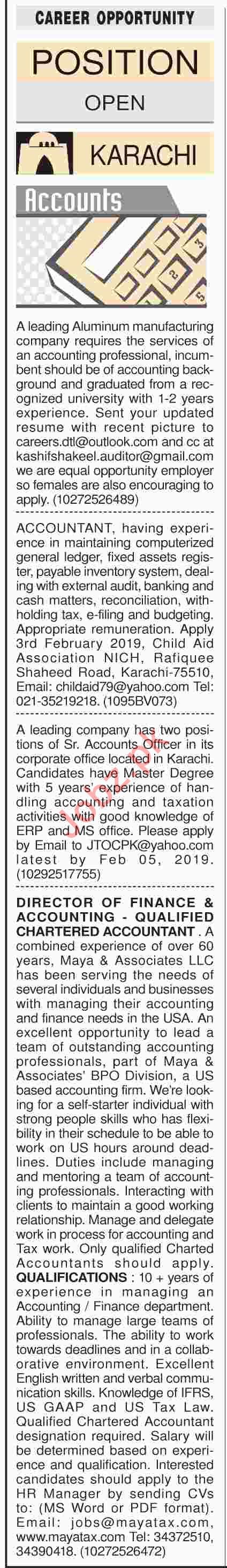 Dawn Sunday Newspaper Accounts Classified Jobs 27/01/2019