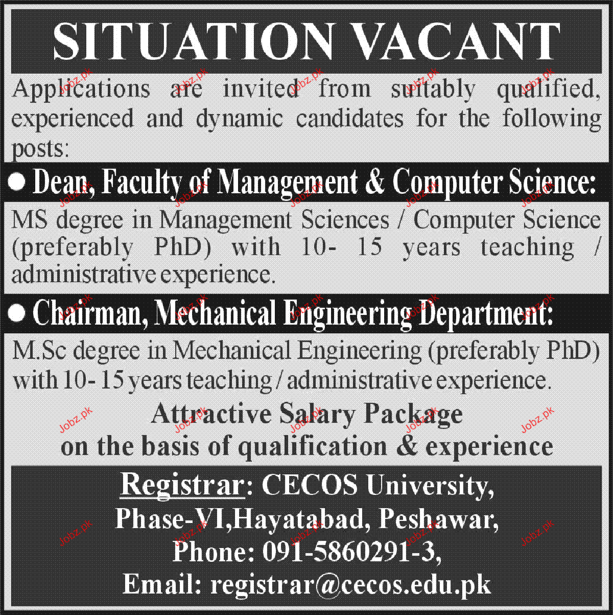 Apply as per details in job advertisement. Login to view further details of how to apply via https://www.jobz.pk online.