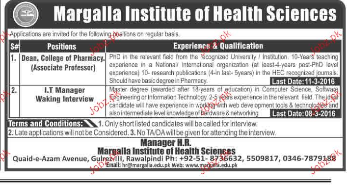 Apply as per details in job advertisement. Login to view further details of how to apply via https://www.jobz.pk online.