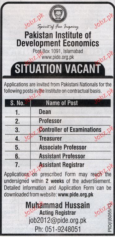 Apply as per details in job advertisement. Login to view further details of how to apply via https://www.jobz.pk online.