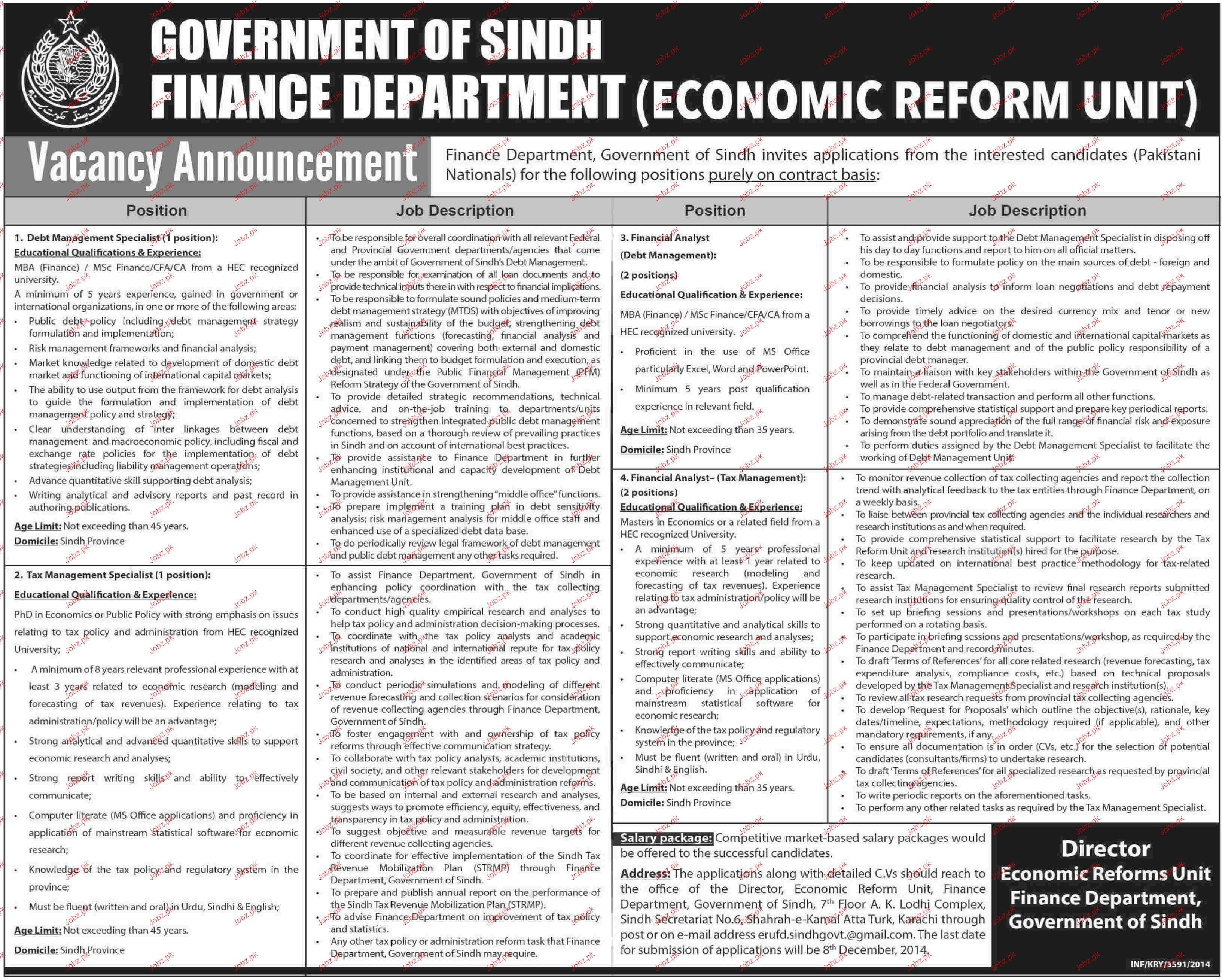 Apply as per details in job advertisement. Login to view further details of how to apply via https://www.jobz.pk online.