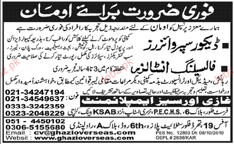 Apply as per details in job advertisement. Login to view further details of how to apply via https://www.jobz.pk online.