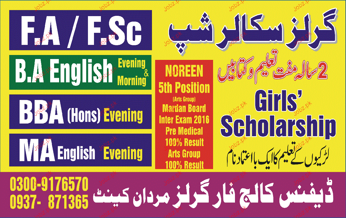 Defence College For Girls Admission in FA, Fsc and BBA in Mardan. Read newspaper ad for exact details.