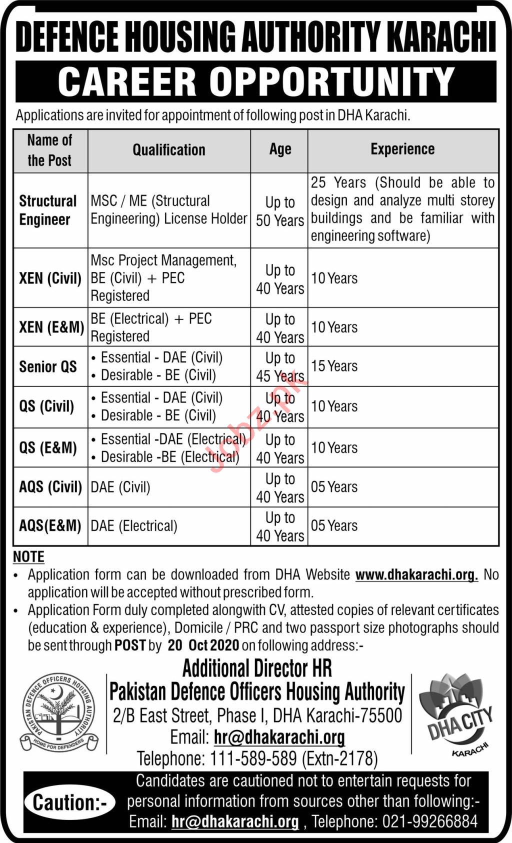 Vacancies in Defence Housing Authority DHA Advertisement October 2020