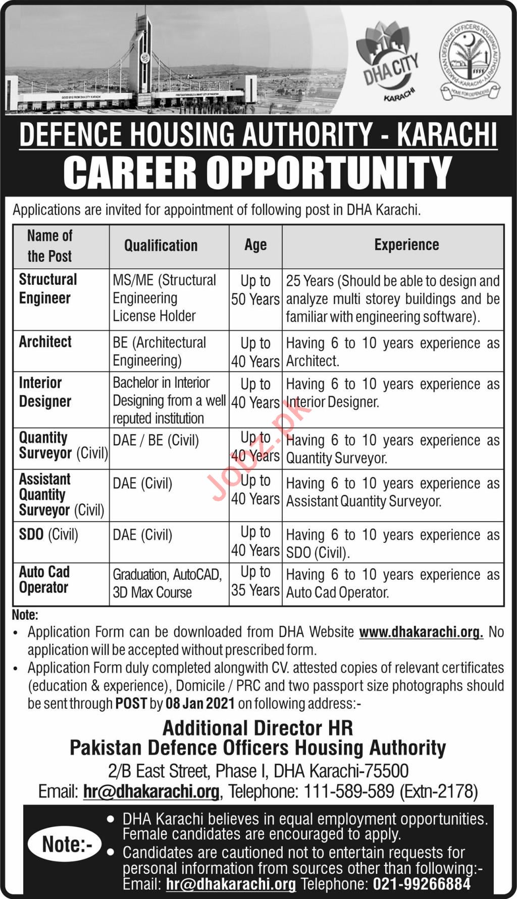 Vacancies in Defence Housing Authority DHA Advertisement December 2020