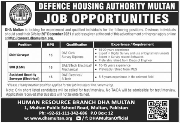 Vacancies in Defence Housing Authority DHA Advertisement December 2021