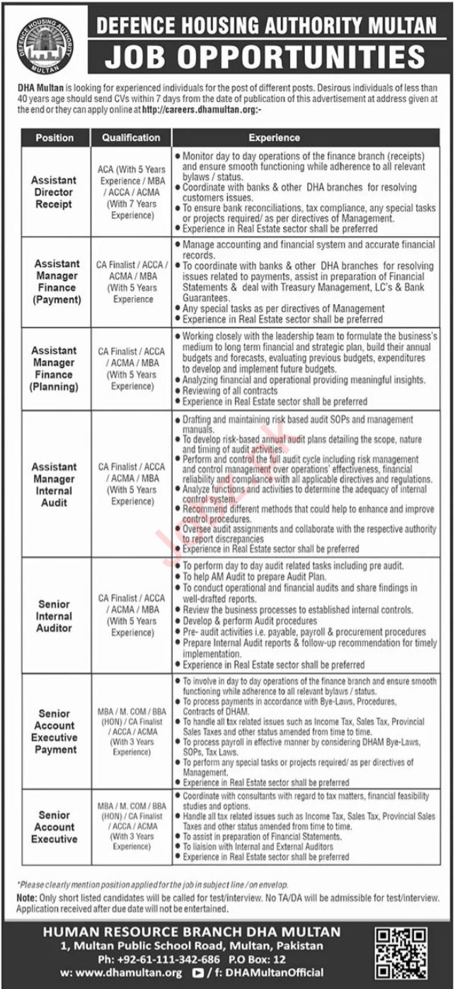 Defence Housing Authority DHA invites applications for job positions advertised in daily The News dated 4 December 2022 for following vacancies in Multan, multan Punjab Pakistan.