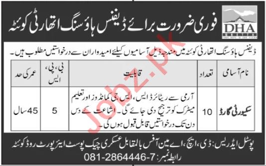 Latest Defence Housing Authority DHA Security Posts Quetta 2025