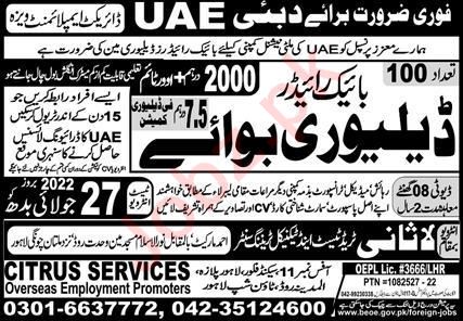 Delivery Boy & Bike Rider Jobs 2022 in Dubai